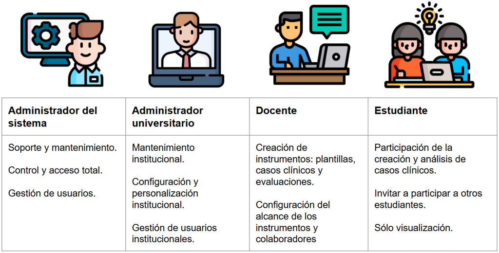 Pueden administrar plantillas de casos, evaluaciones y exámenes de laboratorio.